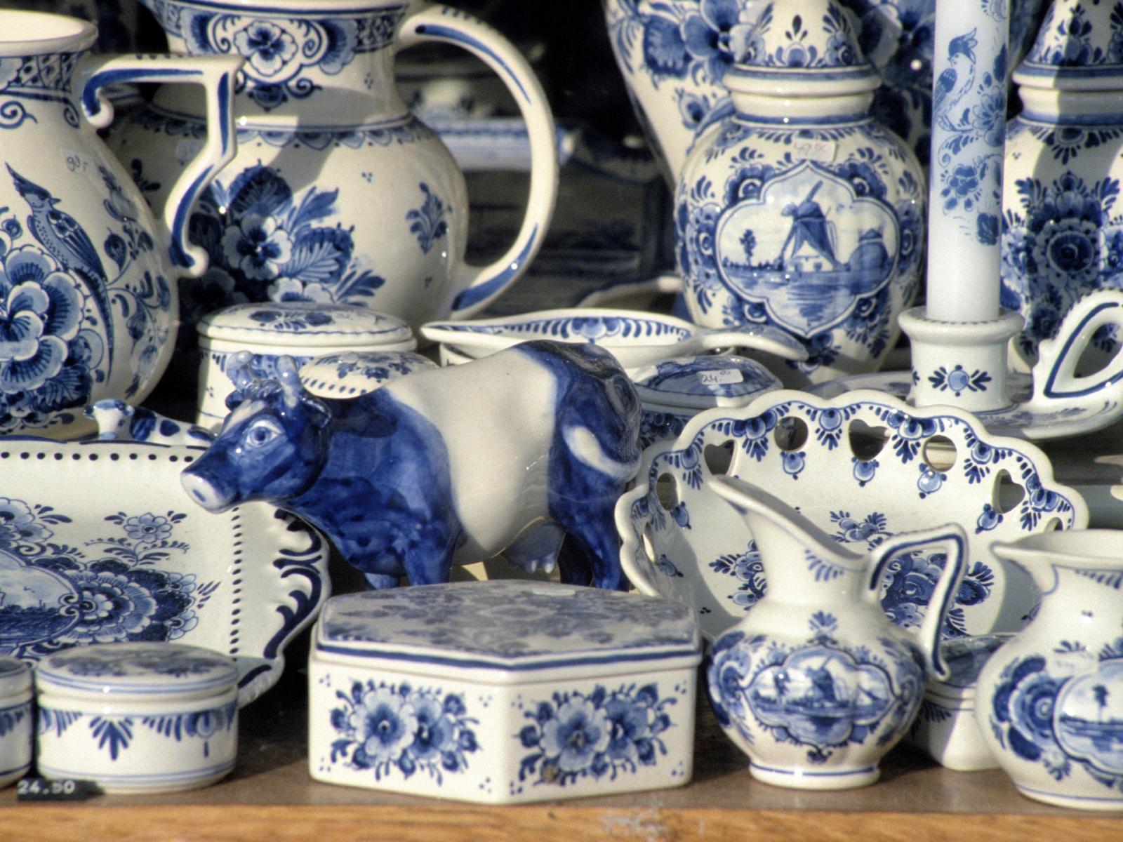 藍白工藝:台夫特藍瓷 (Delft Blue):源自 17 世紀的工藝,藍白相間的圖騰極具質感。