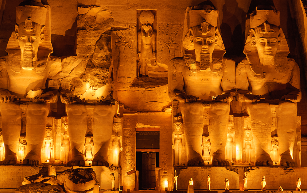 目前埃及有四個地方安排聲光秀,吉薩的金字塔、路克索的卡納克神殿、阿斯旺的菲來島愛西絲神殿、阿布辛貝,而阿布辛貝神殿是近兩年才完成的聲光秀,其聲光效果會比其他聲光秀先進將近二十年,是最值得的。另外,此聲光秀一定要住宿阿布辛貝才能看到,一般團體因要趕回阿斯旺的遊輪過夜,並不安排此聲光秀