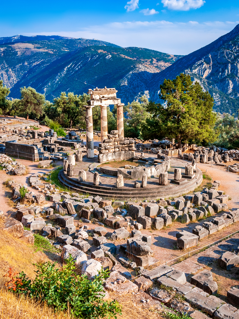 座落於帕納索斯山,曾被古希臘人視為世界的中心。這裡曾是阿波羅神廟的所在地,古人在此求取神諭以決定國家命運。穿梭於殘留的劇場與神殿間,空氣中彷彿仍迴盪著古代先知的預言,充滿神祕且莊嚴的靈性氣氛。
