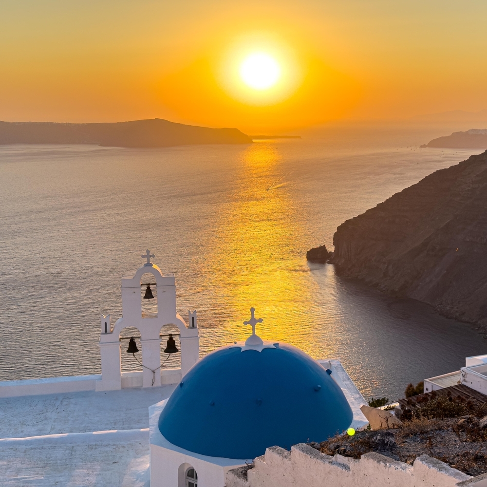 來到希臘,每一個人都會問你『去過聖托里尼了沒?』這裡的美,是世界各地的旅人們熱愛的度假勝地,也只有乘船前往,才有從愛琴海上一望整個聖托里尼島的機會;而聖托里尼如夢境般的夕陽,早已名列世界上必看的美景之一。