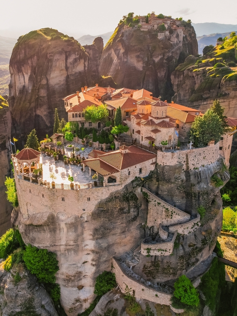 梅提歐隆修道院(Great Meteoron)是希臘梅特歐拉(Meteora)天空之城中歷史最悠久、規模最大且位置最高的東正教修道院,始建於14世紀中葉。該修道院高聳於600多公尺的岩柱上,在過去僅能靠繩索和網籃進出,是人類與自然結合的壯觀遺世聖地,也是僅剩的六座修道院中最著名的一座,且同時是教科文組織的文化與自然雙遺產!