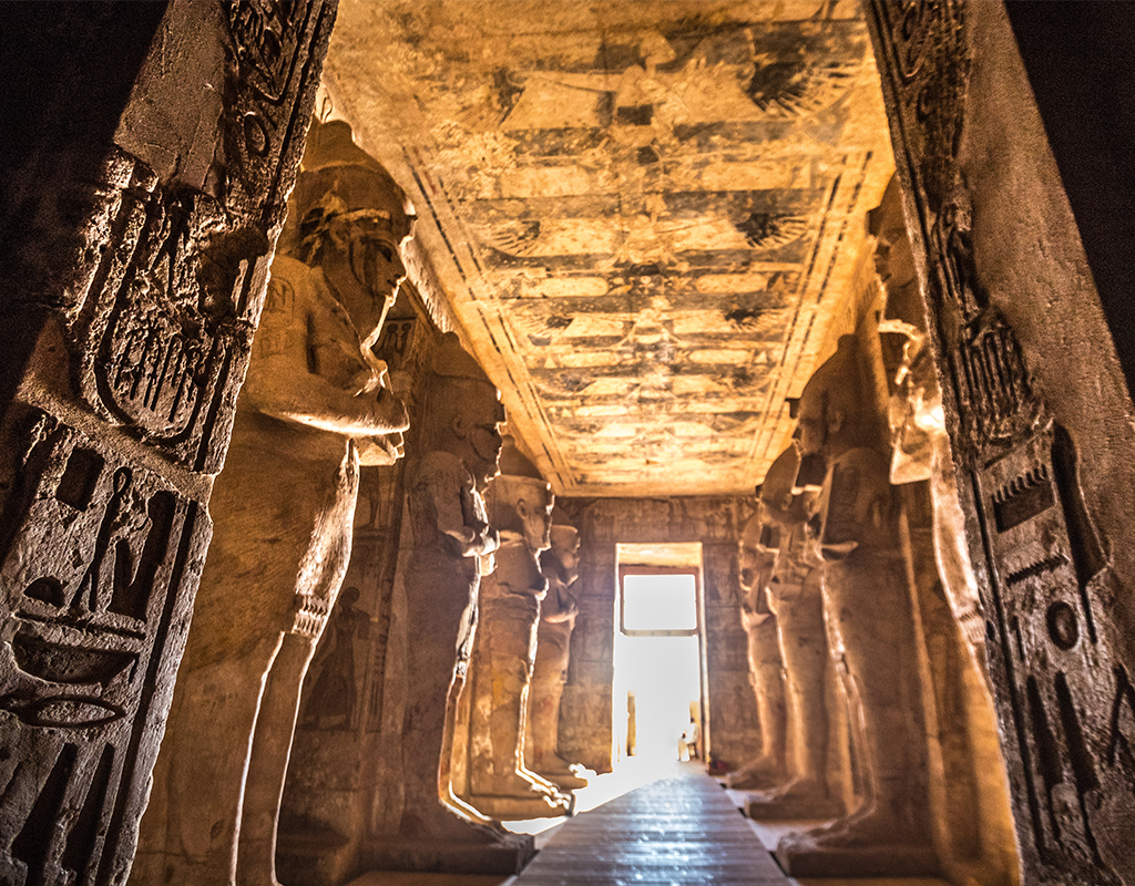 這是一場由古埃及頂尖建築師與天文祭司共同導演的神級光影秀。在神廟深達 60 公尺的地底聖殿中,供奉著四尊神像。每年僅有特定的兩天(拉美西斯的登基日與生日),當清晨的第一縷陽光在地平線升起時,金色光束會精準地穿過幽暗的長廊,彷彿具有靈性般,依序點亮聖殿內的拉·哈拉赫提神、拉美西斯二世以及阿蒙神。
