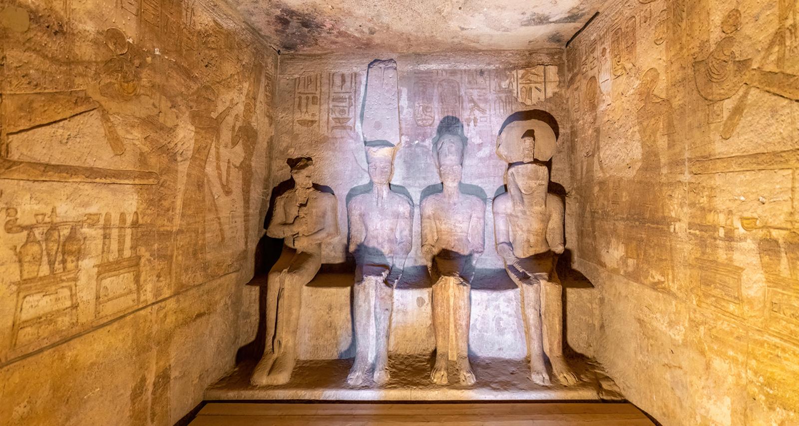 光之神蹟發生當天,清晨的第一道陽光會精準地穿過狹長的甬道,照亮聖殿最深處的四尊神像:阿蒙-拉(Amun-Ra)、拉-荷拉克提(Ra-Horakhty)、拉美西斯二世本人,以及冥界神祇普塔(Ptah)。