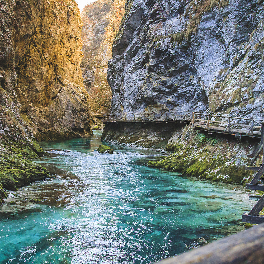 文特加峽谷以清澈碧綠的河水與壯觀岩壁聞名。沿著木棧道步行約1.6公里,可以近距離欣賞湍急溪流與瀑布,終點是美麗的Šum瀑布。