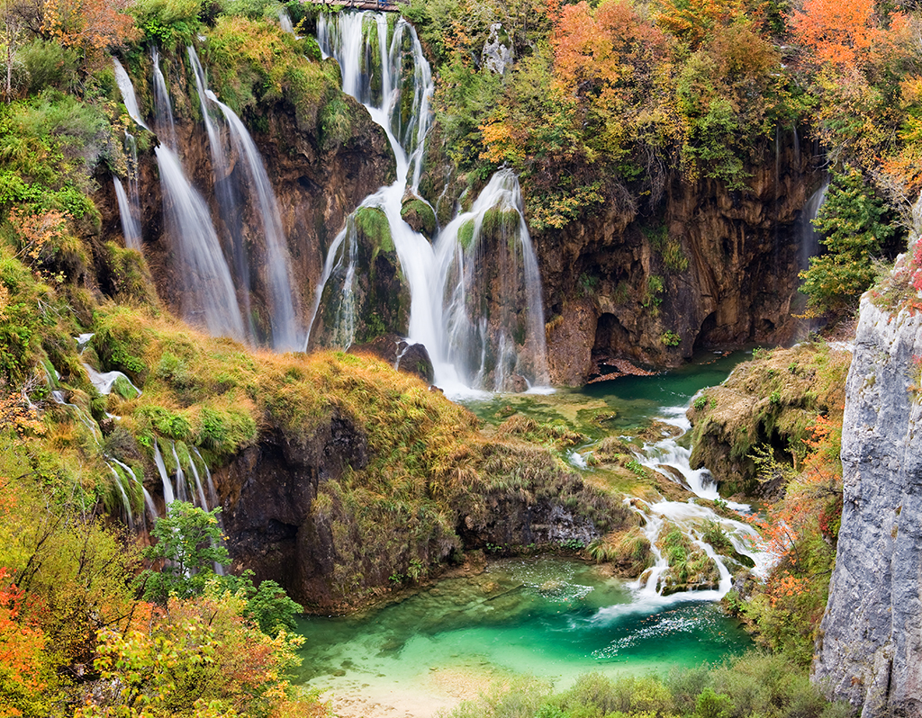 自西元1979 年就被列為世界遺產,豐富多變的地形所融合成自然和諧的美感,不同季節的面貌,處處都令人驚豔。普利特維切國家公園是由十六座湖泊與無數的瀑布沖刷出喀斯特地形的特殊景觀。湖水的顏色會隨著季節與陽光變化而由藍到綠,由綠到灰呈現出不同色調,同時與水中的礦物質及有機物質反射出千變萬化瑰麗不凡的景緻。
