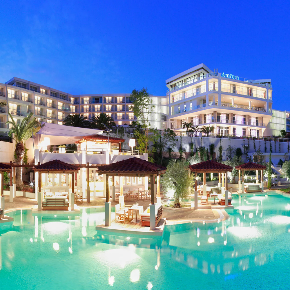 坐落在安靜的赫瓦爾島海灘內,擁有自己的沙灘及泳池,且距離市中心僅幾步之遙,2026年,Amfora將房間重新翻修,讓您住得更加舒適!