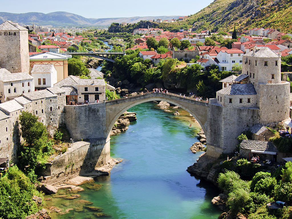 這個多文化城鎮最知名的景點是一座美麗的古橋,於 1993 年戰爭中被摧毀,於西元 2005 年列為聯合國教科文組織 UNESCO 之世界文化遺產。