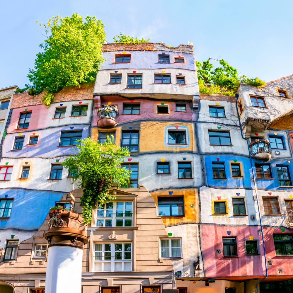 由奧地利近代最重要的藝術家:百水先生所設計的百水公寓,其建築樣式體現了他的繪畫風格與哲學思想,而「沒有一扇窗戶是相同的、沒有一面牆是直線的」正是百水公寓的一大特色;與其說這是一座建築物,倒不如說他是藝術家與200多位居民一同創作的大型畫作,其豐富的色彩、曲線、都為維也納的市容留下了獨特的註點。