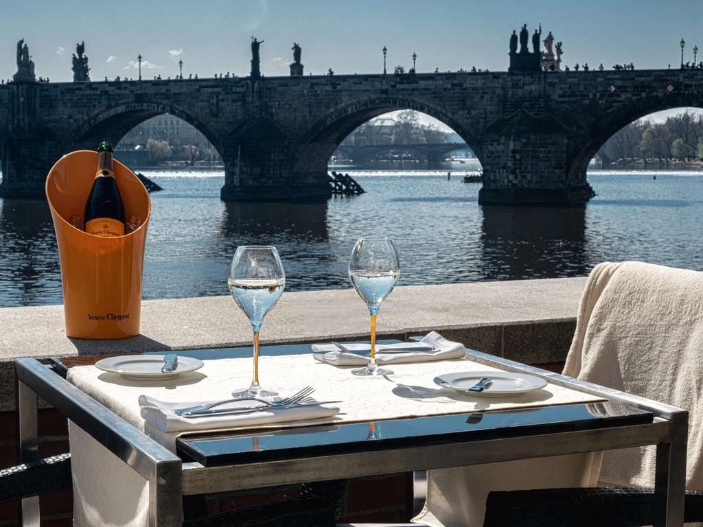 在布拉格伏爾他瓦河畔的餐廳,看著查理老橋上的聖像雕塑與遠處布拉格城堡交織成詩意畫面,每一口美食都伴隨著歷史與風景的香氣。