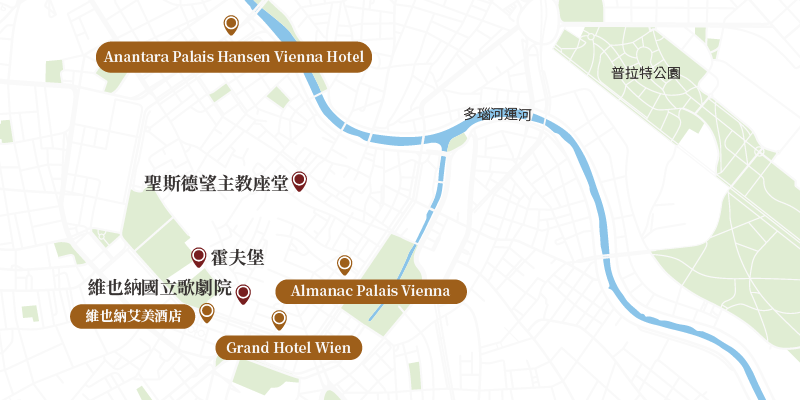 安納塔拉維也納漢森宮飯店 坐落於維也納核心地區,這座新文藝復興風格的宮殿建築,原為19世紀世博會而生,如今化身為結合皇室風華與當代奢華的靜謐居所 ,步出酒店,音樂、藝術與多瑙河畔風景近在咫尺。