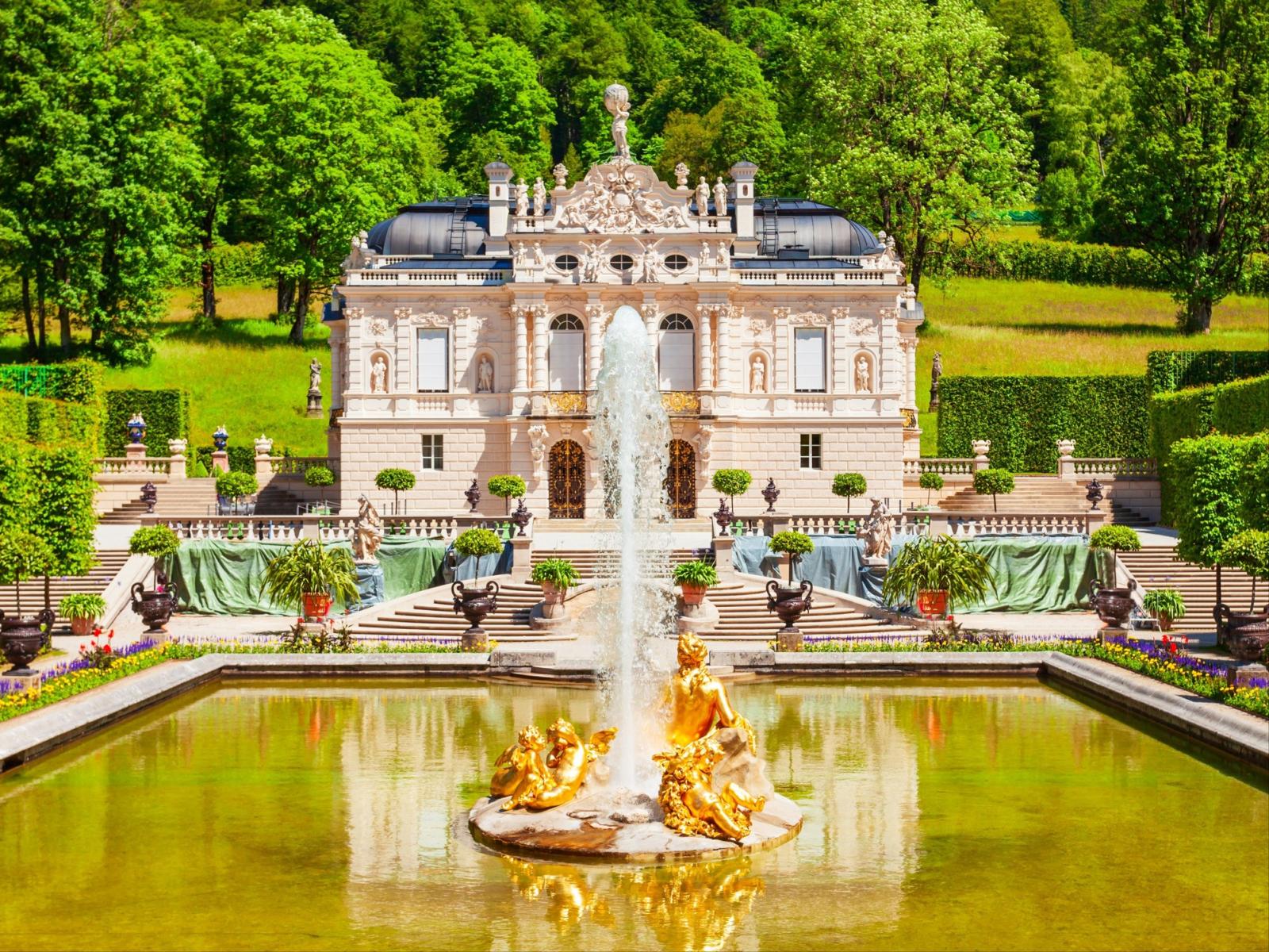 是巴伐利亞國王路德維希二世建造的三座王宮中最小的一座,也是國王在世時唯一完工的一座洛可可夢幻城堡。在此將安排入★城堡內參觀,金碧輝煌的內部裝潢和擺設,充分了解國王對法國國王路易十四的崇拜和對權力的嚮往。城堡外面的人工鐘乳石洞、花園和噴泉造景,更是夏季必訪的景點之一。