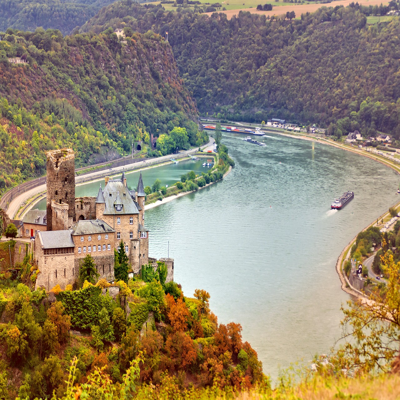 遊船緩緩駛入聯合國教科文組織認定的『浪漫萊茵』河段,城堡如棋子般錯落在兩岸山頭。不只是風景,更是羅蕾萊歌聲中傳說的起點。