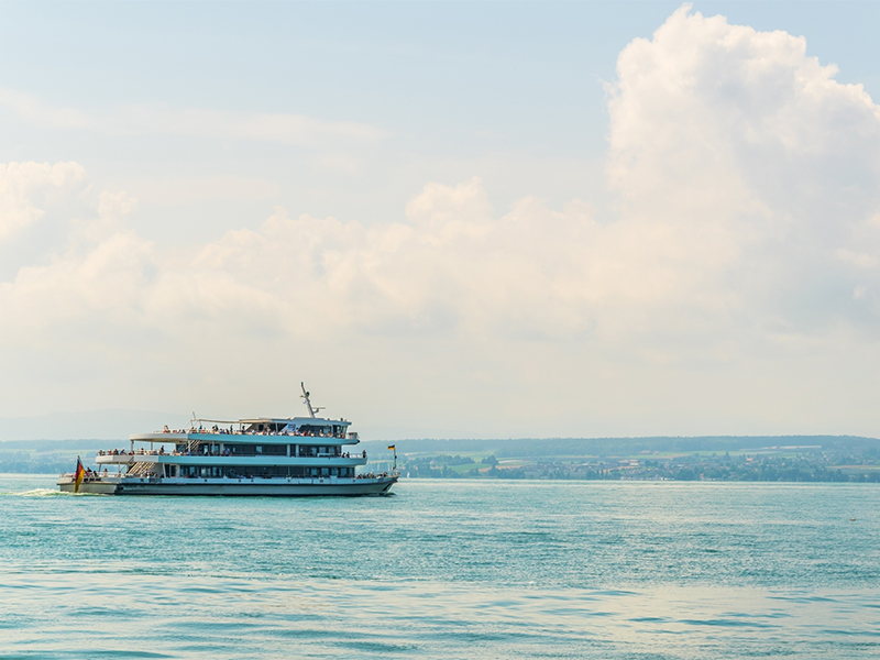 船隻在杜恩湖靜靜前行,湖面如鏡,倒映著阿爾卑斯山的雄偉,彷彿走進油畫裡;而跨越波登湖的渡輪,則以不同的視界連結德瑞國境。