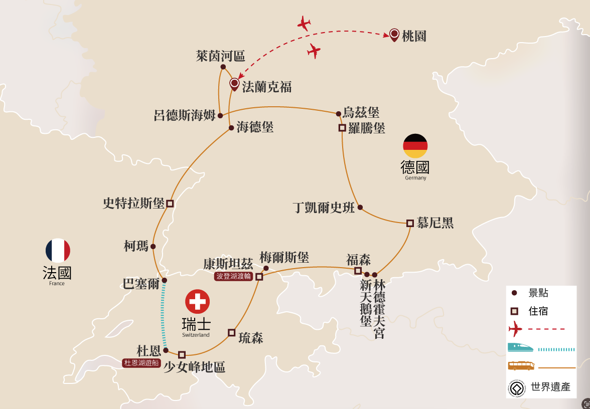 最低行車公里數僅1571公里的德瑞行程,市場最優質食宿、行程最輕鬆的德瑞行程