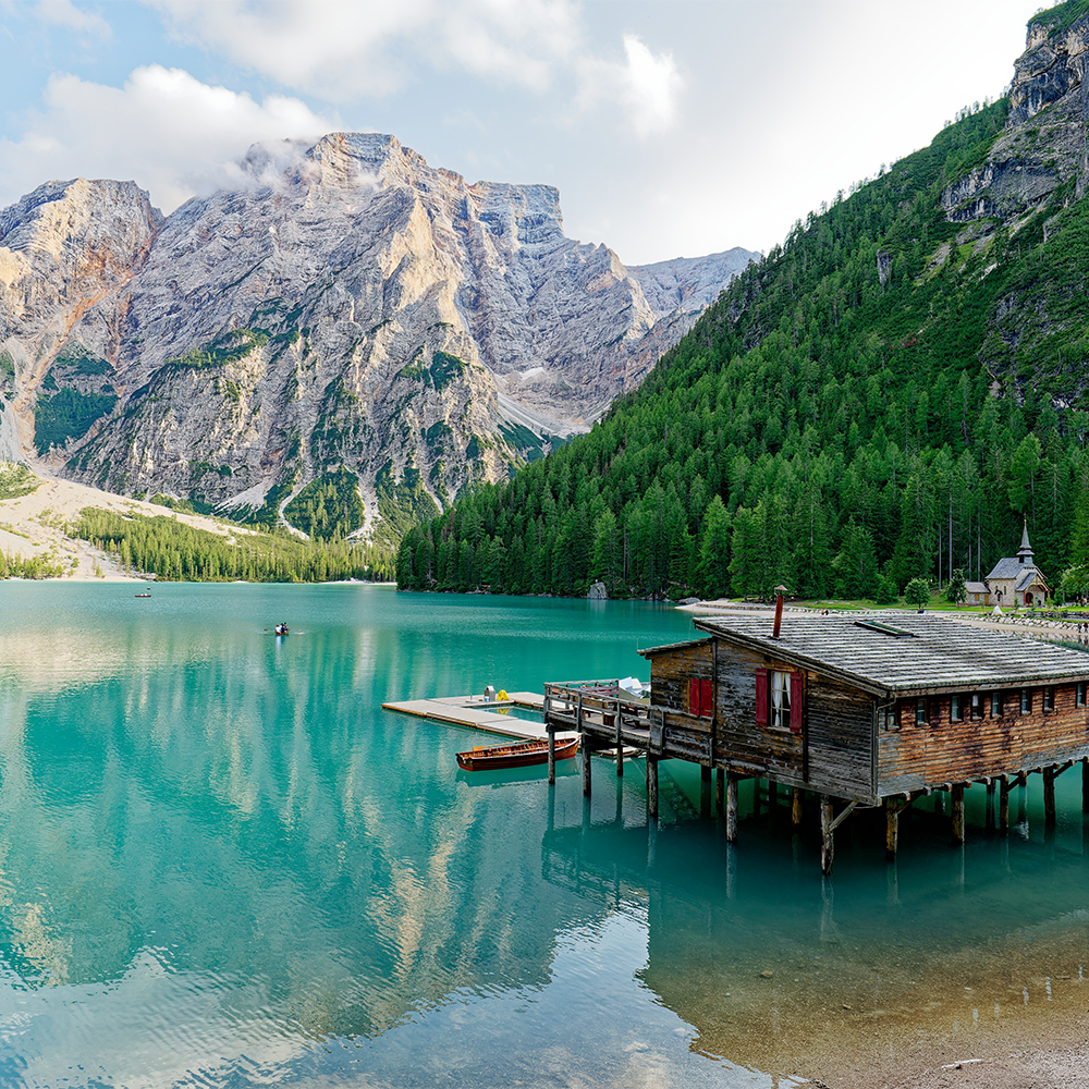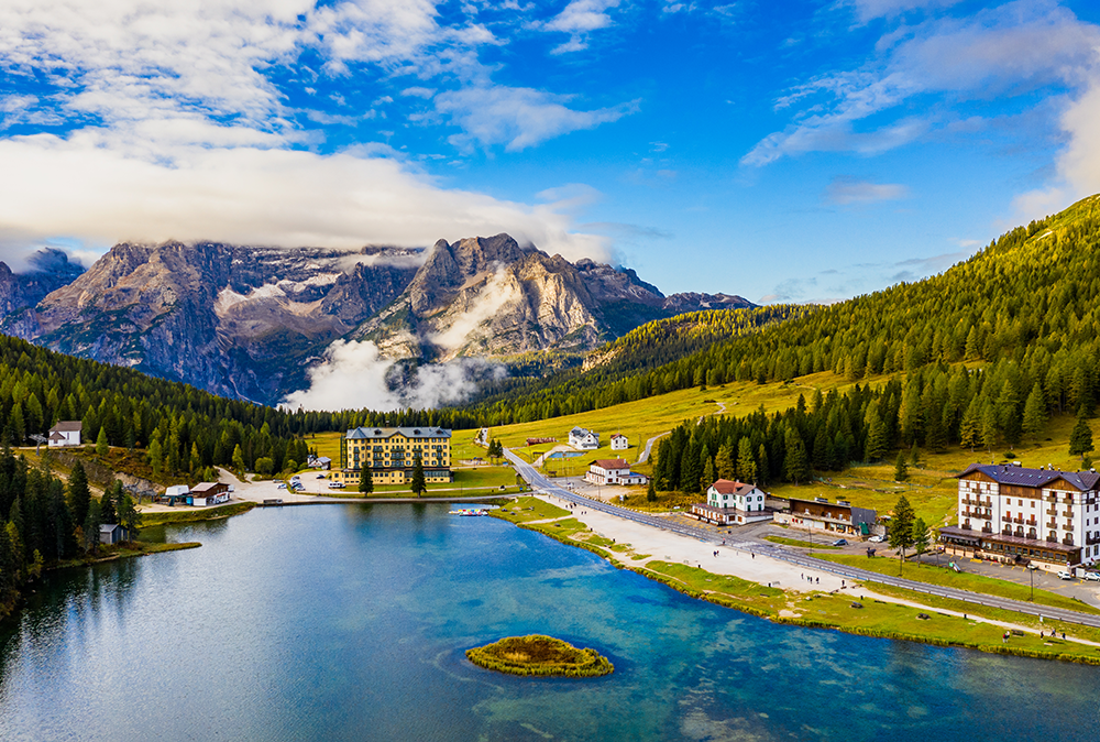 是卡多雷地區最大的天然湖泊,海拔1,754米,湖周長2.6公里。建築物被群山與筆直的針葉林所環抱,平靜的湖面產生了倒影,水、林、山、樓的景色搭配組合,使這裡被評論稱為歐洲最上鏡湖泊之一,是經常出現在電腦桌布的場景。