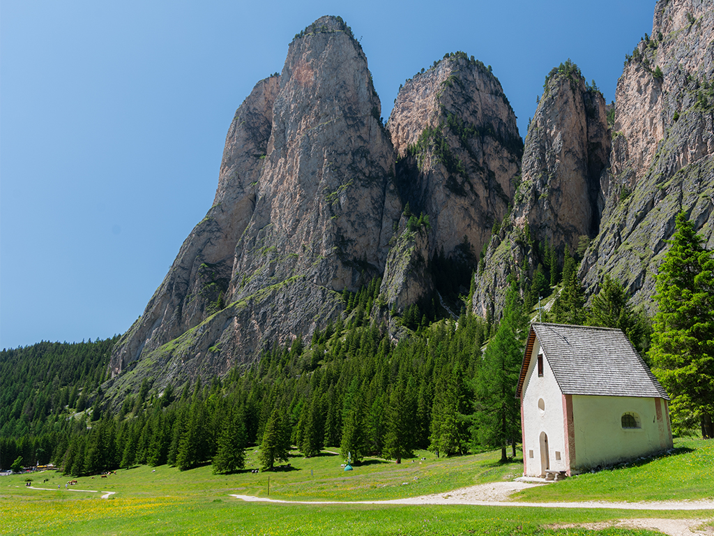 午後,大家集合前往多羅米堤知名人氣拍照景點-富內斯山谷教堂。聖馬達萊娜教堂是富內斯山谷路線中最知名的拍照景點。夏季綠色草地搭配古樸風格的山中教堂,寧靜的田園風光,四季景色交替混和,不同的光影變化搭配背景的奧德峰群,真是上帝在多羅米堤最棒的傑作之一。