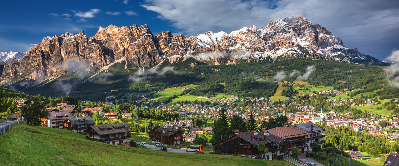 位於義大利威尼托大區北部,是典型的阿爾卑斯山小鎮,有「多洛米堤山之珠」的美譽。小鎮2026年剛舉辦完冬季奧林匹克運動會。走入風景如畫的山城,只見低矮的白色木屋背後襯著奔騰不息的溪流、鬱鬱蔥蔥的森林和多洛米堤山崎嶇嶙峋的山峰;鎮上有不少時髦的運動或滑雪服飾店和餐廳,是觀光客最喜愛的購物街區。