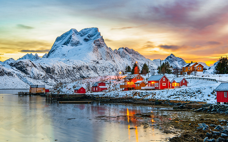 擁有群島中最迷⼈的漁村,有峽灣及壯麗的⼭脈相伴,讓這裡擁有挪威最美村莊稱號。
