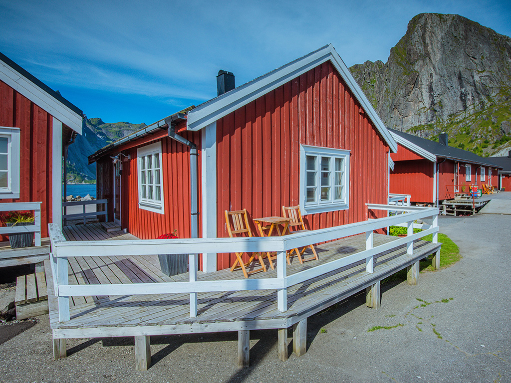 我們安排傳統漁屋2連泊,挪威漁屋(Rorbuer)過去是挪威漁⺠使⽤的空間,漁屋顏⾊通常以挪為國旗紅⾊作為裝飾主⾊。