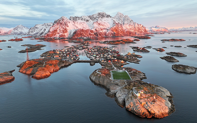 羅弗敦群島的威尼斯!亨寧斯韋爾不只是一個漁村,更是一處充滿生命力的極地綠洲。從世界最美球場的驚鴻一瞥,到藝術藝廊內的靈魂激盪,這裡的每一座小橋、每一棟彩色小屋,都在訴說著北極圈獨有的時髦與浪漫。