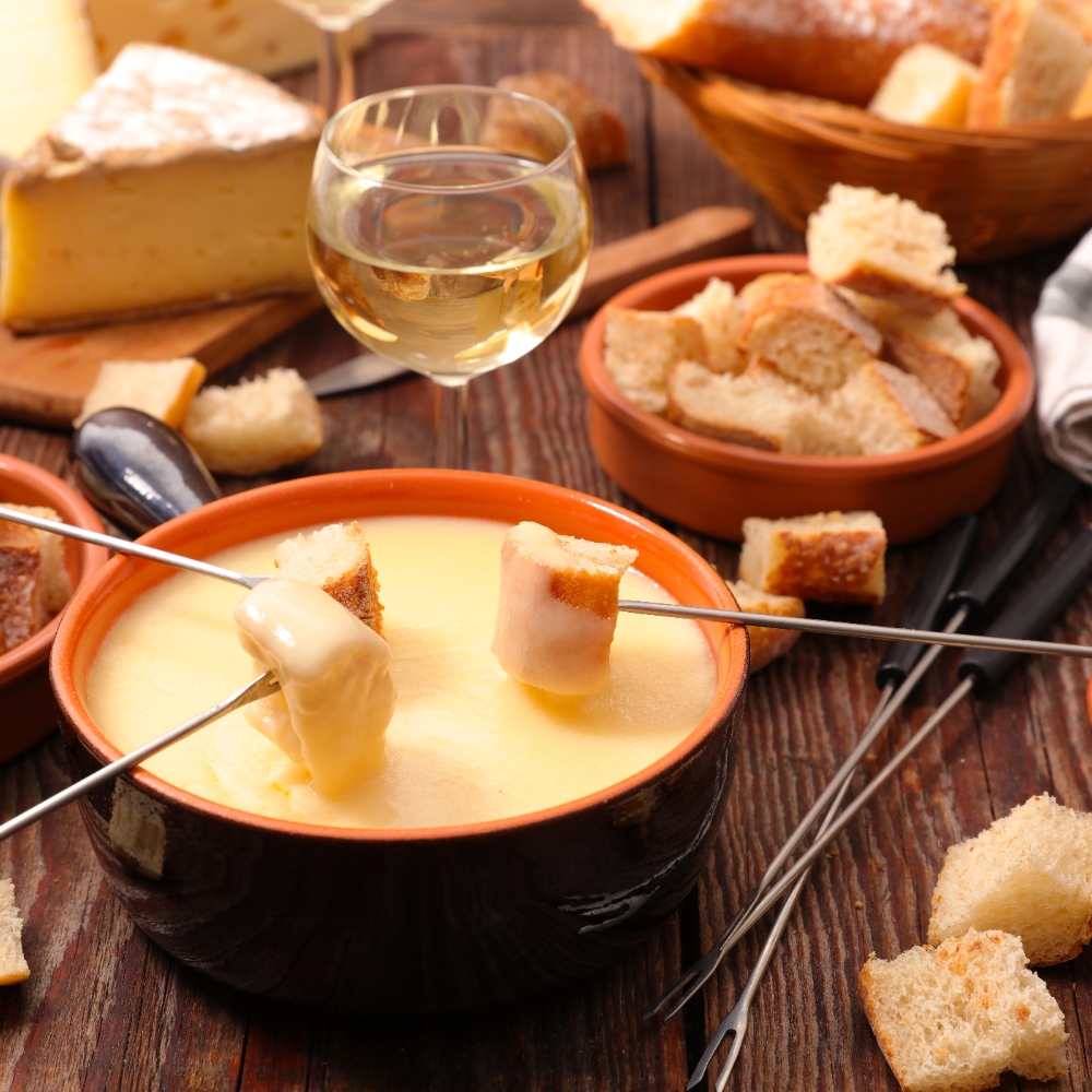用融化的起司混合白酒加熱而成,搭配麵包塊沾食,濃郁香滑,是最具代表性的阿爾卑斯山區美食之一。