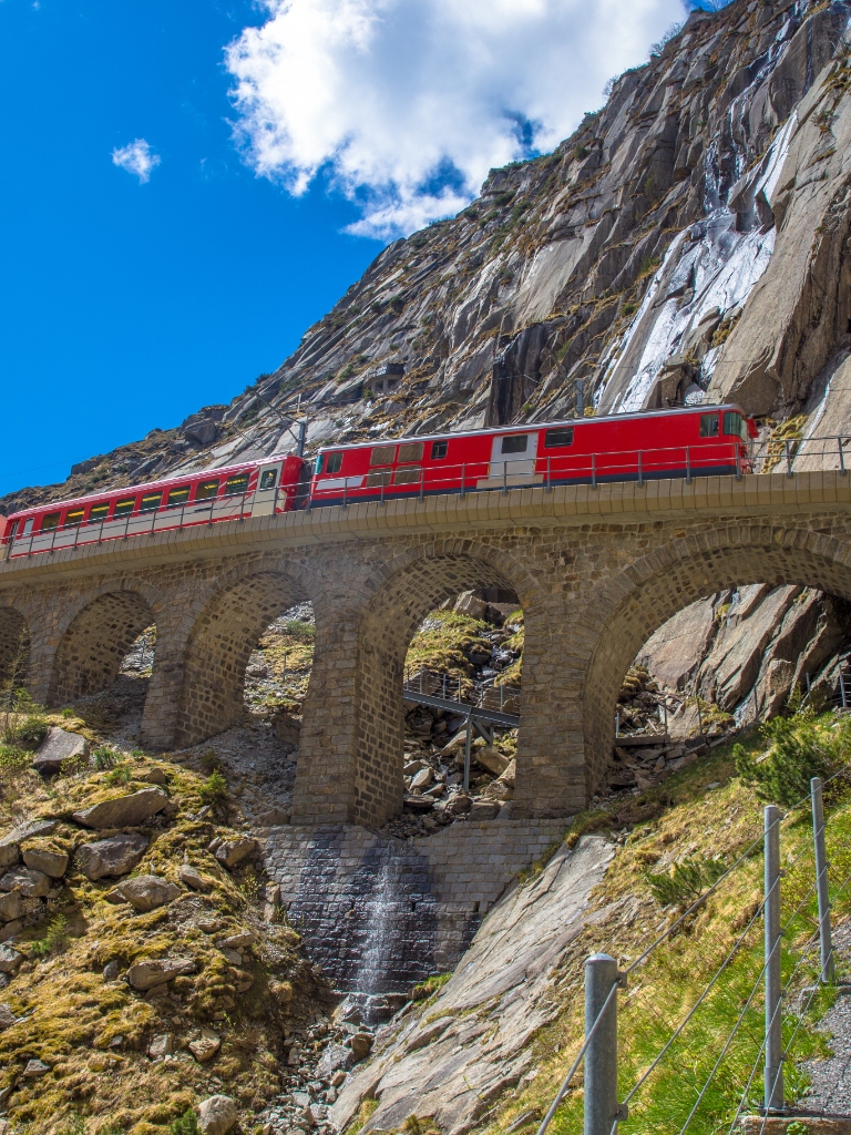連結義大利米蘭與蘇黎世之間的道路,也是傳說中瑞士國民英雄威廉泰爾的行軍路線,列車在山凹之中前進,經過1882年開通,曾為瑞士最長隧道(全長15公里)的聖哥達隧道,來到高仙能峽谷。