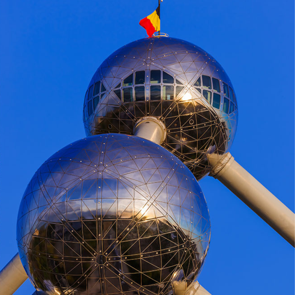 位於布魯塞爾地標 Atomium ,源自1958年世界博覽會的代表性建築。這座以鐵晶體結構為靈感打造的未來感地標,不僅是城市象徵,也見證了當年博覽會對科技與設計的想像。