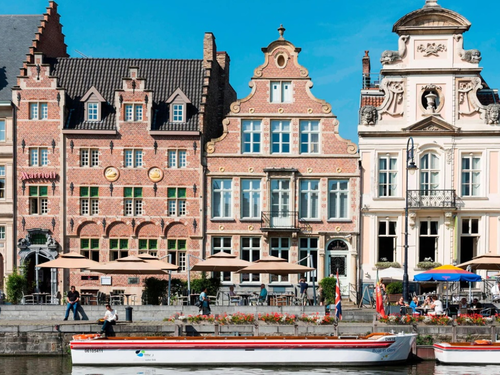 Ghent Marriott Hotel位於根特歷史河岸核心地帶,坐擁運河與古城建築景致,走出飯店就是石板街道、城堡與中世紀塔樓交織的城市風光,白天與夜晚都充滿歐洲古城氛圍。